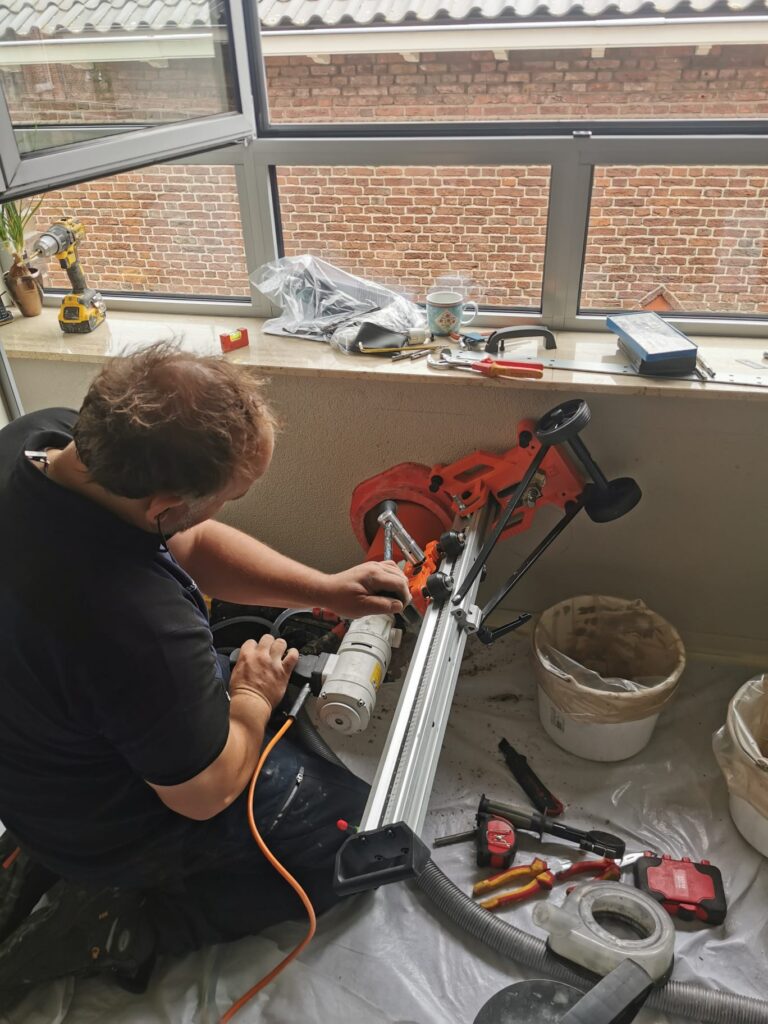• Twee gaten met een diameter van Ø160, Ø180, Ø200 maken met een maximale diepte van 40 cm. En één van 20 mm (dieper kan alleen in overleg).